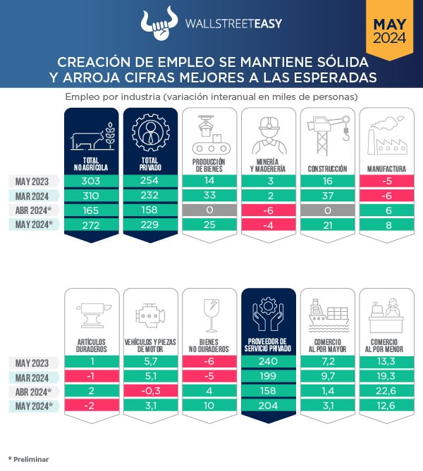 En general, este reporte es inflacionario, implica que el segmento de empleos sigue bastante bien. Por supuesto, este resultado incomoda a la Reserva Federal y aleja la bajada en tasas por lo menos hasta septiembre.