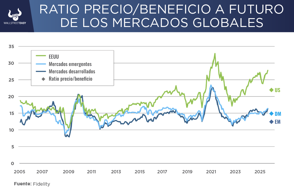 ¿ALGO MÁS? Un dólar más débil aumenta automáticamente el valor de las inversiones extranjeras para los ahorradores en EEUU, y dado que el dólar sigue considerándose sobrevalorado en términos de largo plazo, existe un margen considerable para que esta dinámica continúe favoreciendo a los mercados europeos, japoneses y emergentes durante el próximo año. ¿OTRO DATO RELEVANTE? En el continente europeo, el resurgimiento se apoya en una transformación de la política monetaria y fiscal. Los bancos europeos, que sufrieron durante años bajo el peso de tipos de interés negativos, han logrado finalmente normalizar su rentabilidad, sanear sus balances y aumentar los dividendos. ¿QUÉ MÁS PASÓ? A esto se suma un cambio de paradigma en Alemania, que ha abandonado su tradicional austeridad para lanzar un masivo paquete de inversión de hasta $1,3 billones destinado a defensa, infraestructura y transición energética. Este gasto público no solo beneficia a contratistas de defensa, sino que genera un efecto multiplicador en sectores industriales básicos, como la producción de cemento y materiales de construcción, donde la oferta está limitada por regulaciones ambientales, pero la demanda está en pleno auge. ¿OTRO ACONTECIMIENTO? Las acciones extranjeras comenzaron 2025 significativamente más baratas que las estadounidenses. Tras un rendimiento inferior en general durante unos 15 a 20 años, el resto del mundo sigue estando muy infravalorado en términos de sus monedas y, especialmente, de sus acciones. Incluso después de un rendimiento superior en 2025, las acciones no estadounidenses se situaron recientemente alrededor de 35% más baratas que las estadounidenses, según la relación precio-beneficio (PER) a futuro.