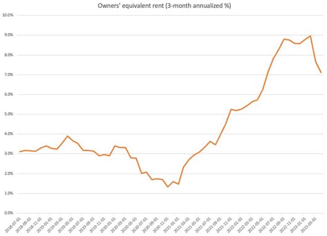 Al analizar el reporte, observamos por segundo mes consecutivo una menor subida en las rentas, que corresponde al 70% del peso en el sector servicios, que a su vez equivale a 60% de la inflación actual en la economía de EE. UU. Esto explica por qué el reporte sorprendió al mercado en esta ocasión.