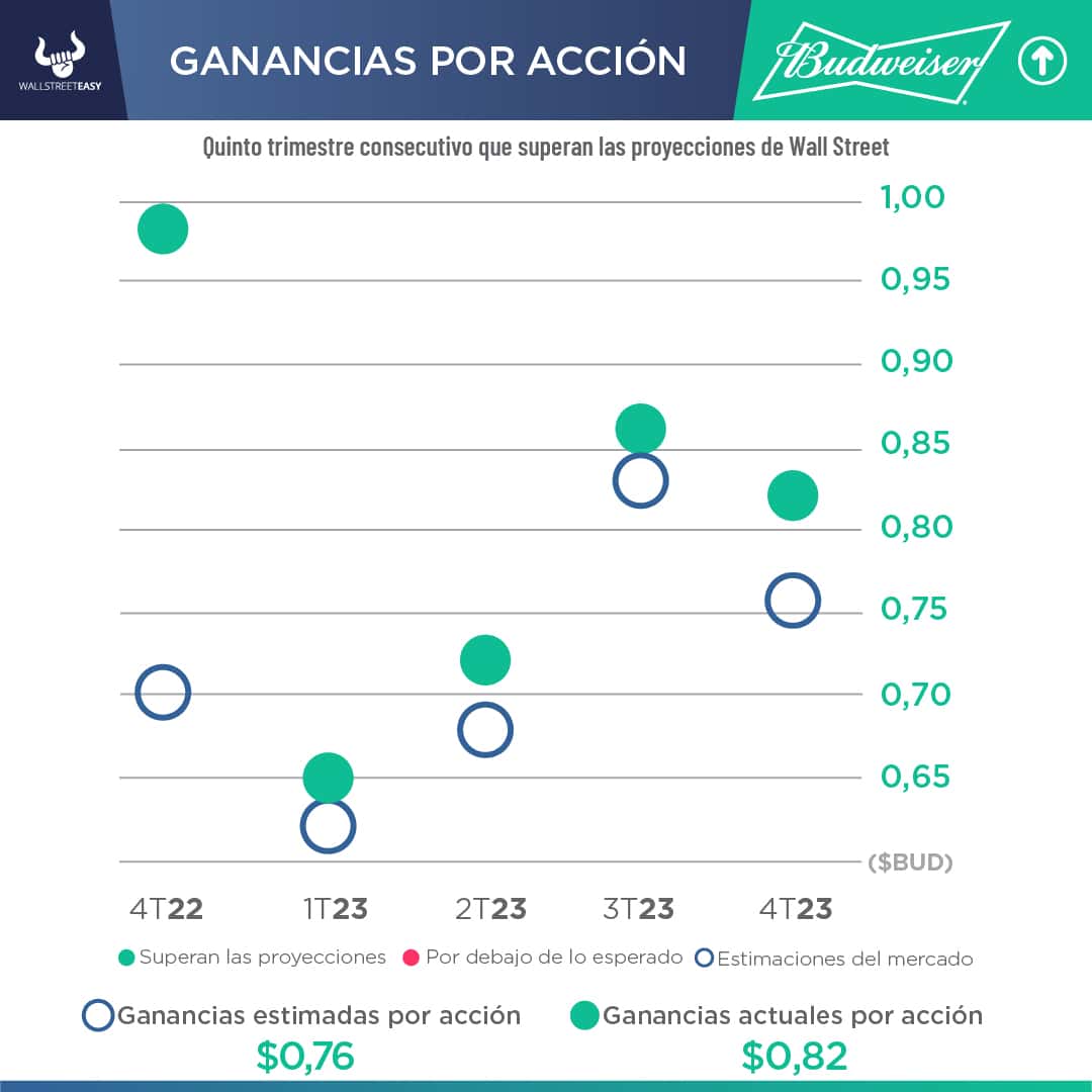 • La empresa con sede en Lovaina (Bélgica), anunció un beneficio de $1.890M en el cuarto trimestre, y un beneficio ajustado de 82 céntimos por acción, que superó la proyección de 76 céntimos por acción.