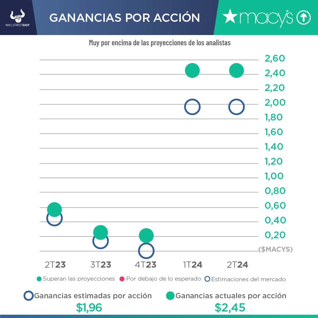 • El operador de grandes almacenes anunció beneficios ajustados por acción de $2,45, que superaron los $1,96 esperados, e ingresos de $8.120M, por debajo de las perspectivas del mercado de $8.150M.