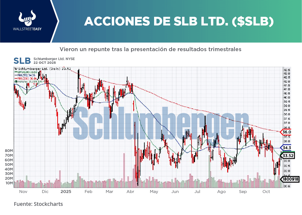 LA NOTICIA SLB Ltd., empresa anteriormente conocida como Schlumberger, publicó ingresos y ganancias ajustados para el tercer trimestre que superaron ligeramente las expectativas de los analistas. PONME AL DÍA SLB reportó ganancias ajustadas para el tercer trimestre de 69 centavos por acción, superando las previsiones de los analistas de 65 centavos por acción. ES MÁS Los ingresos del tercer trimestre de SLB alcanzaron los $8.930M, por encima ligeramente de las expectativas de Wall Street, que eran de $8.920M. ¿POR QUÉ ES RELEVANTE? El director ejecutivo, Olivier Le Peuch, indicó que los resultados estaban en línea con las expectativas de la empresa y destacó el crecimiento de los ingresos del trimestre, que se produjo «a pesar del contexto de un mercado petrolero plenamente abastecido, un entorno geopolítico incierto y unos precios de las materias primas moderados». ¿ALGUNA NOVEDAD ADICIONAL? Aunque algunas regiones siguen enfrentándose a dificultades, los mercados internacionales en particular «están demostrando su resistencia, y varios países de Medio Oriente y Asia siguen registrando un sólido crecimiento», añadió Le Peuch. POR ÚLTIMO Las acciones de la empresa con sede en Houston, que proporciona tecnología para la perforación y el procesamiento, cayeron 1,2% el pasado viernes. El índice de referencia S&P 500 subió ligeramente.