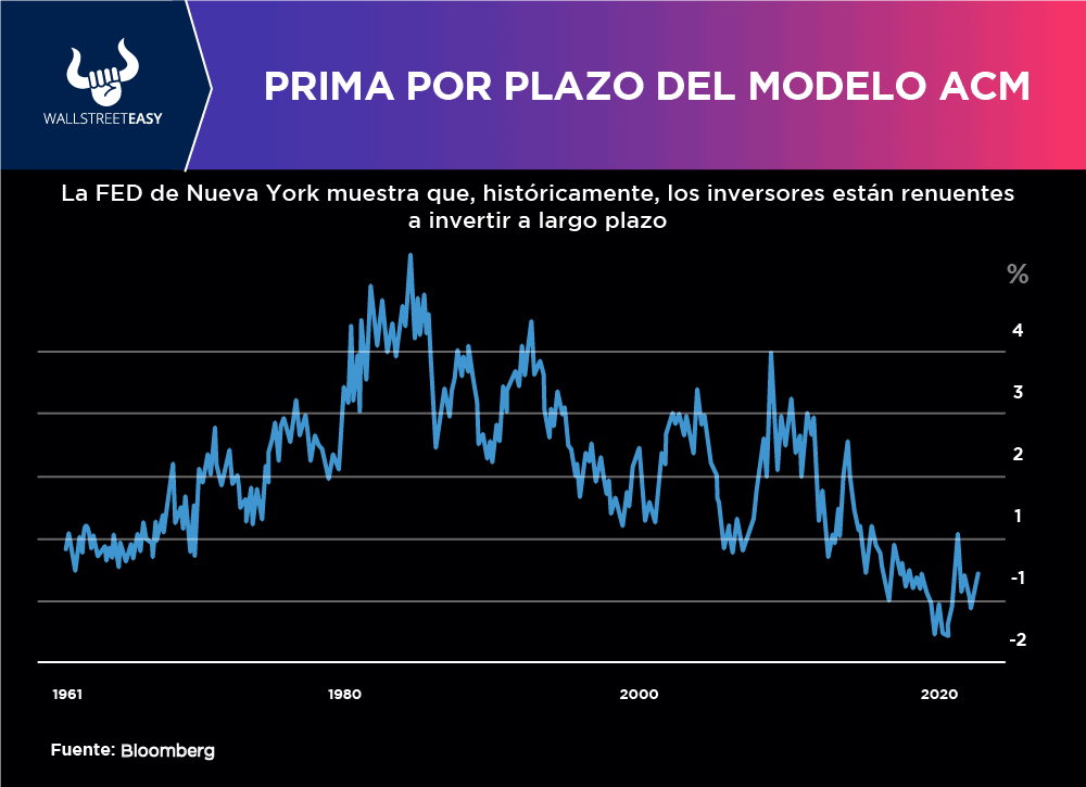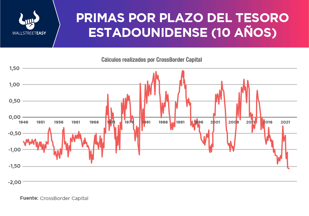 Esta tendencia es extraña, ya que generalmente el temor a una mayor inflación, como es el escenario actual, significa exigir una prima por plazo más alta. También se esperaría que sea más alta cuando el mercado de bonos es volátil, como lo ha sido últimamente. Entonces, la prima por término no dice lo que normalmente señala.