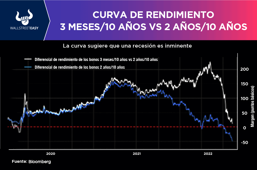 Actualmente, se mantiene una curva de rendimiento invertida, la cual suele ser presagio de una recesión, que cuando es inminente se puede esperar que la inversión se entienda a lo largo de la curva, con los retornos a tres meses por encima de los retornos a 10 años. En estos momentos la versión más popular de la curva de dos años / 10 meses es la más invertida desde el 2000, y la curva de tres meses / 10 años está cerca de la inversión.