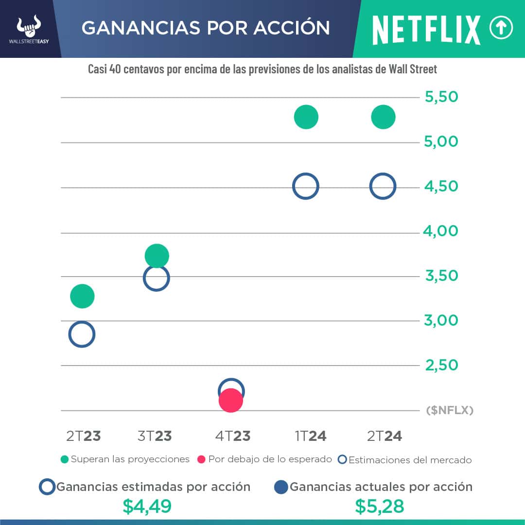 - Netflix prevé una tasa de crecimiento de los ingresos del 16% para el segundo trimestre. Para el ejercicio fiscal 2024, se prevé un crecimiento de los ingresos de entre el 13% y 15%, con un margen operativo del 25%. Esto sugiere un ritmo de crecimiento más lento en la segunda mitad del año. También indica que el incremento de abonados se ralentizará debido a la estacionalidad.