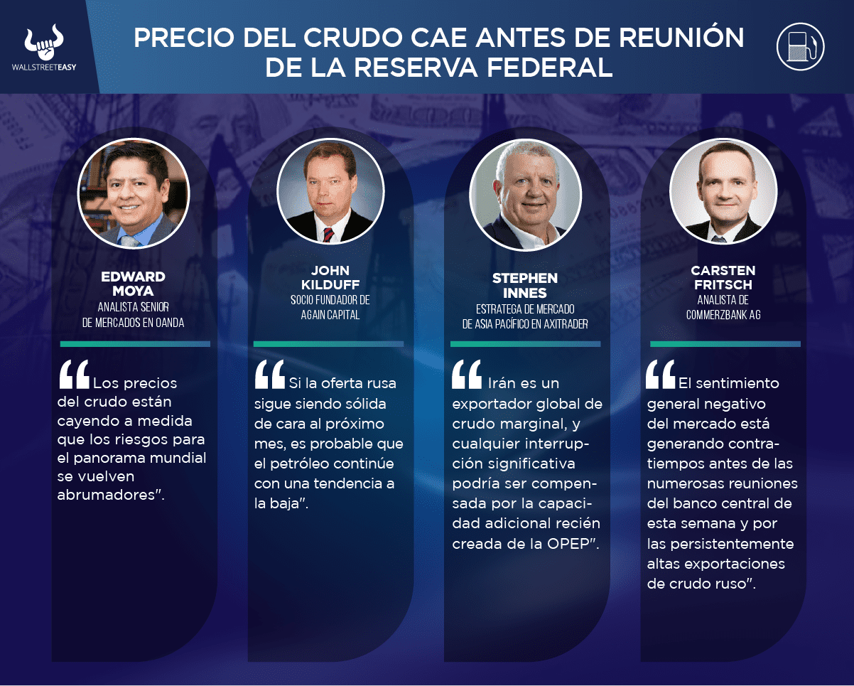 El precio del crudo inició la semana en rojo debido a que los aumentos inminentes de las tasas de interés por parte de los principales bancos centrales pesaron sobre la demanda y las exportaciones rusas se mantuvieron fuertes. Nuevo rango esperado es de $78 - $82.