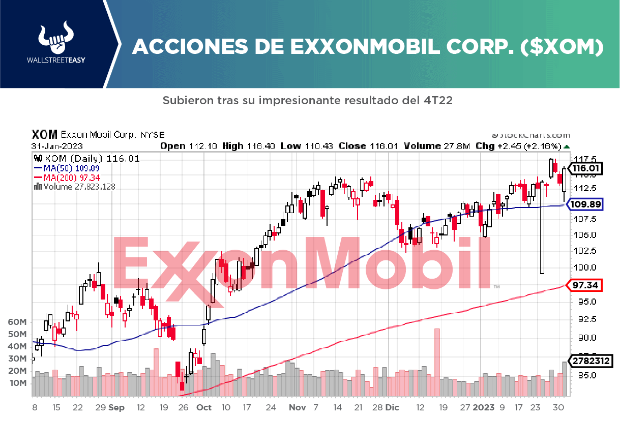 LA NOTICIA ExxonMobil Corp. ($XOM) obtuvo beneficios por $56.000M en 2022, según informó la empresa ayer, llevándose a casa unos $6,3M por hora el año pasado, y estableciendo no solo un récord de la empresa, sino un máximo histórico para la industria petrolera occidental. PONME AL DÍA Excluidos los cargos, el beneficio para todo el año fue de $59.100M. La producción aumentó en unos 100.000 bpd de petróleo y gas con respecto al año anterior, hasta 3,8M bpd. El beneficio por acción ajustado de $3,40 superó el consenso de $3,29 por acción. ES MÁS Los resultados de ExxonMobil superan con creces el beneficio neto récord de $45.200M que registró en 2008, cuando el petróleo alcanzó los $142 por barril, +30% por encima del precio medio del año pasado. ¿POR QUÉ ES RELEVANTE? La empresa dijo que los profundos recortes de costos durante la pandemia ayudaron a sobrealimentar los beneficios del año pasado. ¿ALGUNA NOVEDAD ADICIONAL? Exxon indicó que sus beneficios del cuarto trimestre se vieron afectados en $1.300M por un impuesto extraordinario de la Unión Europea que comenzó a aplicarse en el último trimestre y por el deterioro de activos. La empresa ha demandado a la UE alegando que el impuesto excede sus competencias legales. POR ÚLTIMO Se espera que las grandes petroleras batan sus propios récords anuales gracias a los altos precios y al aumento de la demanda, lo que elevaría sus beneficios combinados a cerca de $200.000M. Esta cifra ha renovado las críticas a la industria petrolera y ha suscitado llamamientos para que más países impongan a las empresas impuestos sobre los beneficios extraordinarios. EN CONCRETO "En conjunto, los beneficios y el flujo de caja aumentaron considerablemente de un año a otro. Esto se debe realmente a una combinación de mercados fuertes, gran producción y un buen control de costos", declaró Kathryn Mikells, directora financiera de Exxon a Reuters.