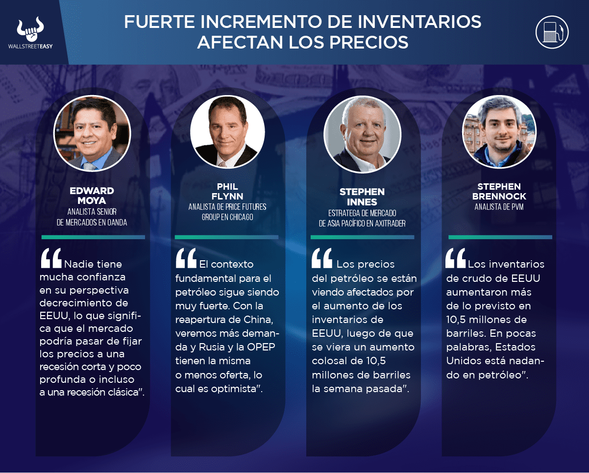 EIA, por sus siglas en inglés) reportó 843M de barriles en existencias de crudo, tanto comerciales como estratégicas, lo que representa un aumento de 16,3M de barriles. El Instituto Americano del Petróleo (