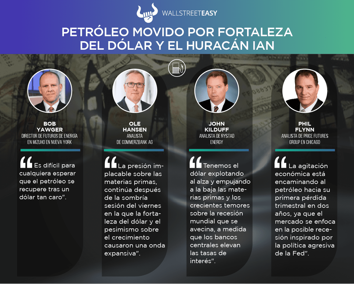 Los precios del petróleo se estabilizaron luego de un inicio de semana volátil, ya que la presión del fortalecimiento del dólar y la acumulación de inventario se vio compensada por los recortes de producción de EEUU causados ​​por el huracán Ian, que generó restricciones de suministro en el Golfo de México de EEUU. Nuevo rango esperado es de $75 - $88.