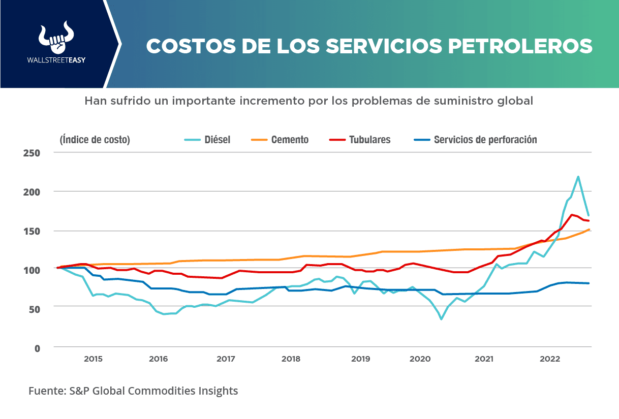 • Los costos del gasóleo (diésel) y los precios de las tuberías de acero son los que más han aumentado, aunque la eficiencia de los operadores, como las técnicas de perforación más rápidas, han compensado casi la mitad del impacto negativo de los costos de perforación.