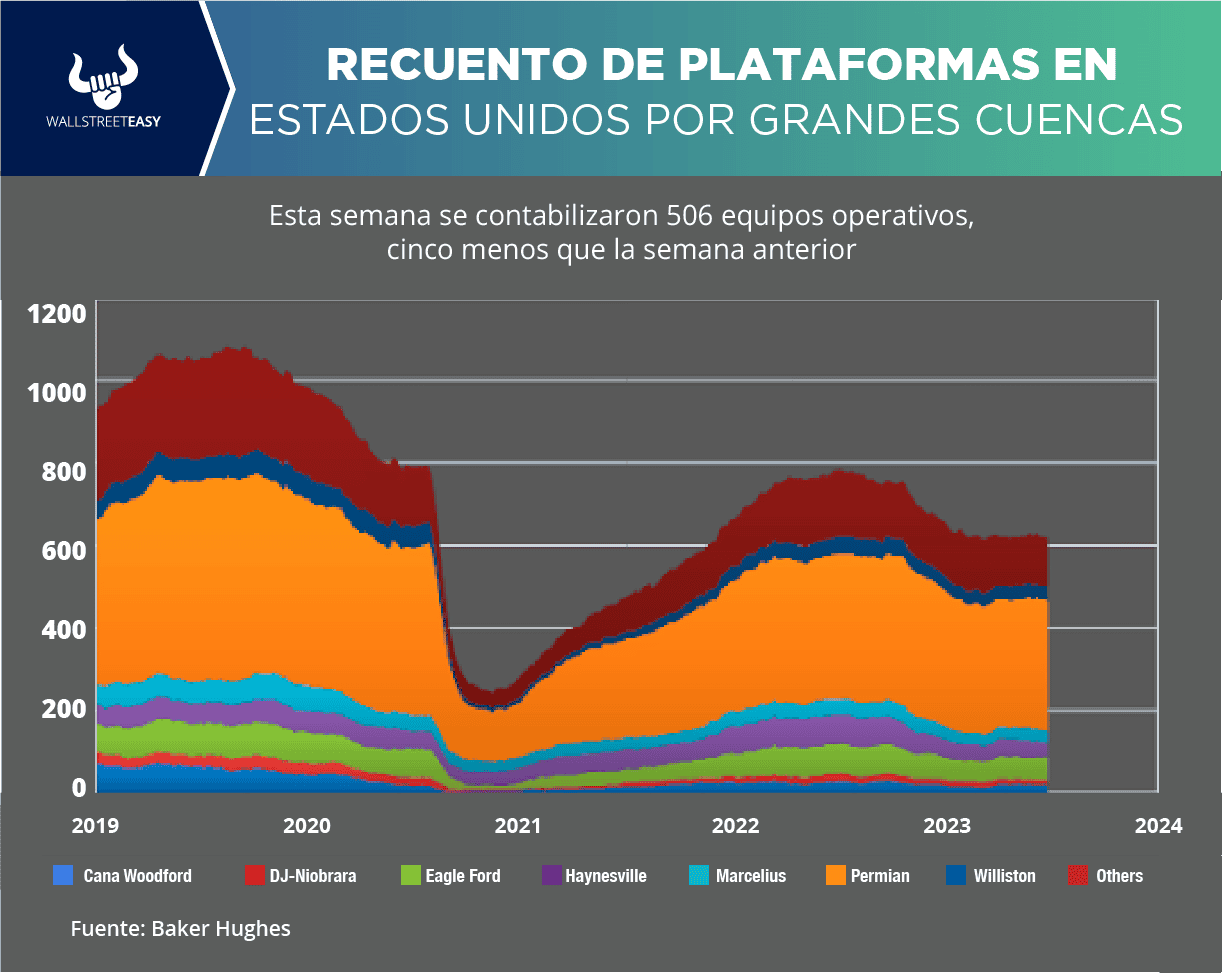 CUÉNTAME SOBRE LAS PLATAFORMAS PETROLERAS EN EEUU De acuerdo con información de Baker Hughes, actualmente en EEUU se encuentran 613 equipos activos (incluyendo los de gas). En la actividad petrolera se contabilizaron 506, cinco menos que la semana anterior. En las operaciones de gas hay 105 equipos operativos, uno menos que hace siete días. Hace un año estaban activas 755 plataformas.