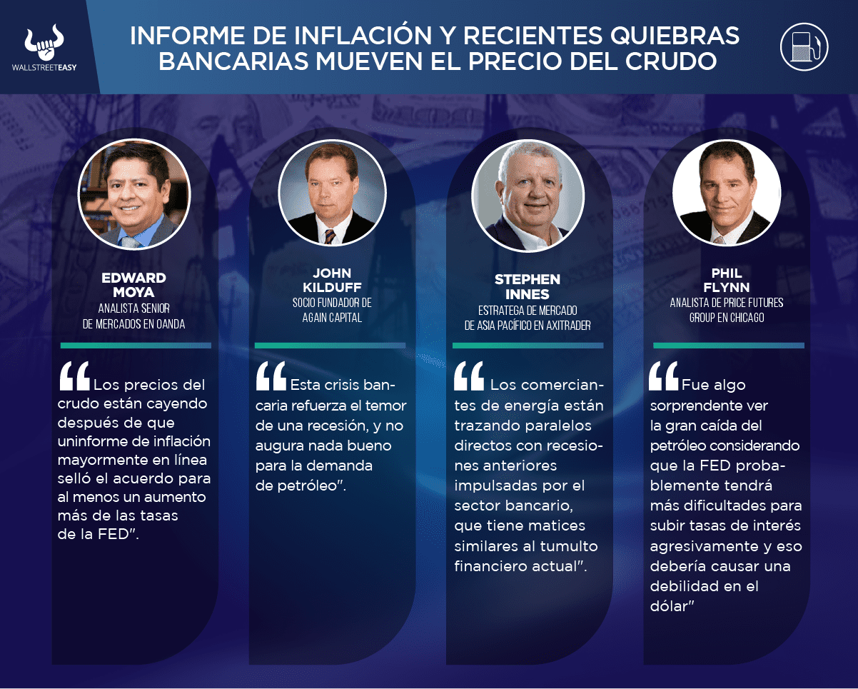 Silicon Valley Bank y el riesgo de que otros bancos estadounidenses caigan han sacudido los mercados del petróleo, enviando el WTI por debajo de $70 por barril y el Brent, menos de $75 por barril: