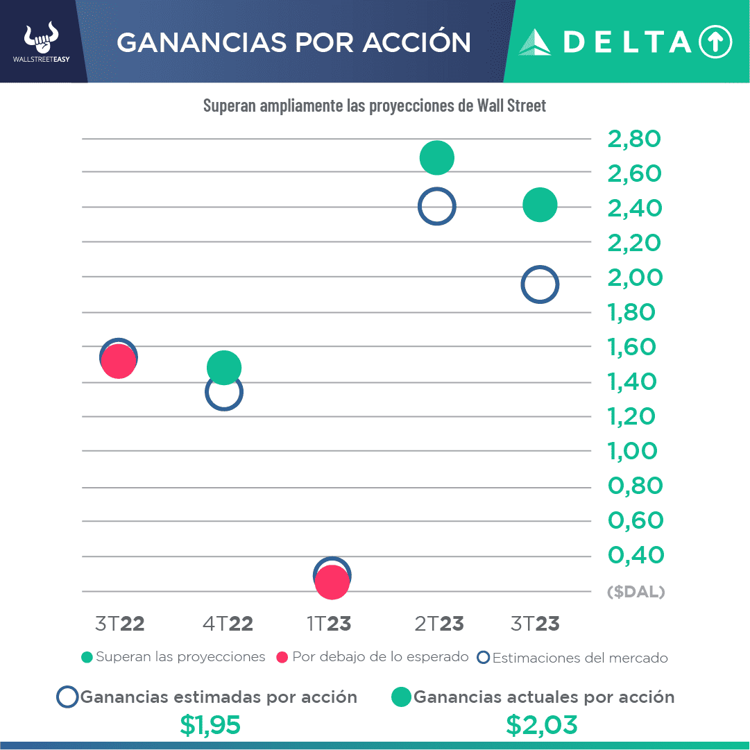 - Los beneficios de Delta Air Lines aumentaron casi +60% en el 3T23.