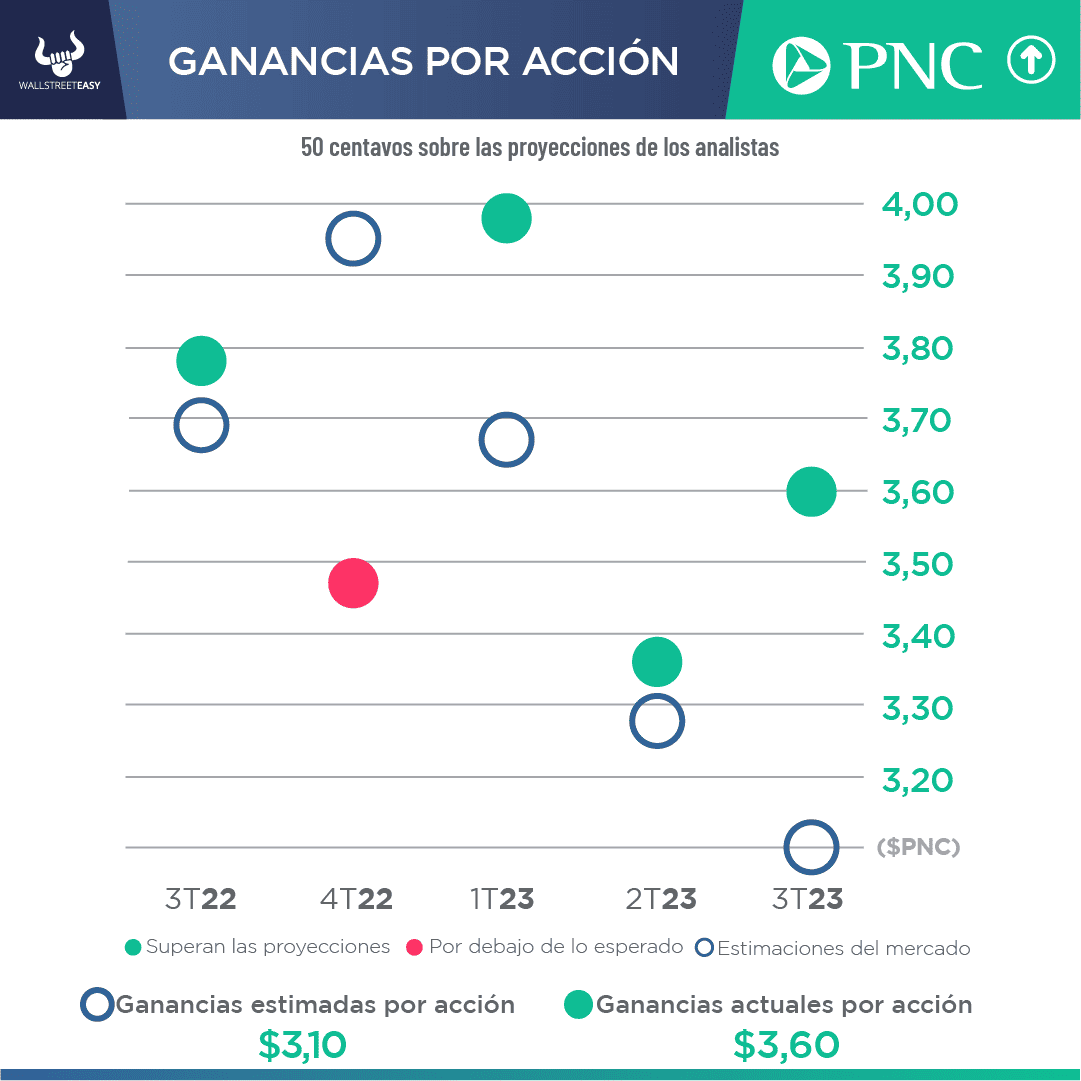 - El banco con sede en Pittsburgh obtuvo beneficios netos de $1.550M, o $3,60 por acción, frente a los $1.620M, o $3,78 por acción, del mismo periodo del año anterior. Los analistas esperaban un beneficio de $3,10 por acción.