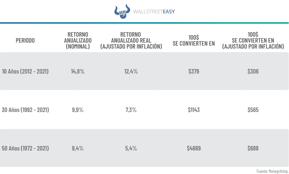 • El retorno anual del ETF del S&P 500 es de 10%.