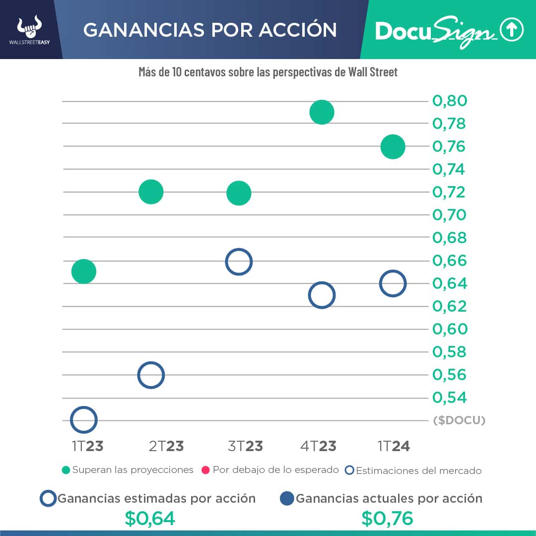- Para el trimestre actual, DocuSign prevé ingresos de entre $704M y $708M, con una facturación de entre $685M y $695M. Las estimaciones habían previsto ingresos de $701M y una facturación de $683M.