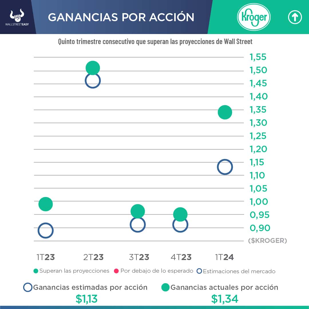 - El mayor operador de supermercados de EEUU, ganó $1,34 por acción sobre una base ajustada. Las ventas fueron de $37.100M. Wall Street esperaba un beneficio de $1,13 por acción con ingresos de $37.000M.
