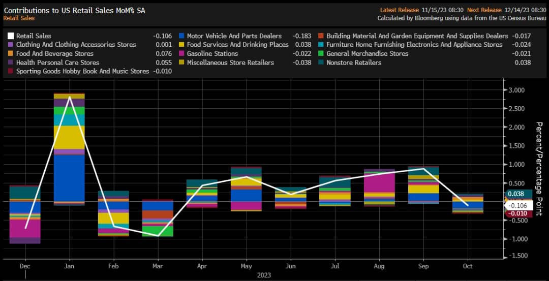 No solo eso, sino que si restamos a las ventas minoristas el gasto en autos, vemos un crecimiento de 0,1%, por lo cual parece implícito que la protesta de los sindicatos de fabricantes de autos más importantes tuvo un efecto sobre las ventas generales del mes. Es bueno considerar que ya se han llegado a acuerdos para reactivar las operaciones de las tres grandes marcas, General Motors, Ford y Stellantis.