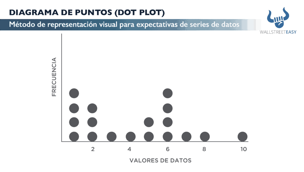Es una representación visual de una agrupación de datos. Uno de los diagramas de puntos más conocidos es el de las proyecciones de la Reserva Federal para las tasas de interés que se publican cada trimestre. En este diagrama de puntos. cada miembro del FOMC está representado por un solo punto, pero cada punto es anónimo.
