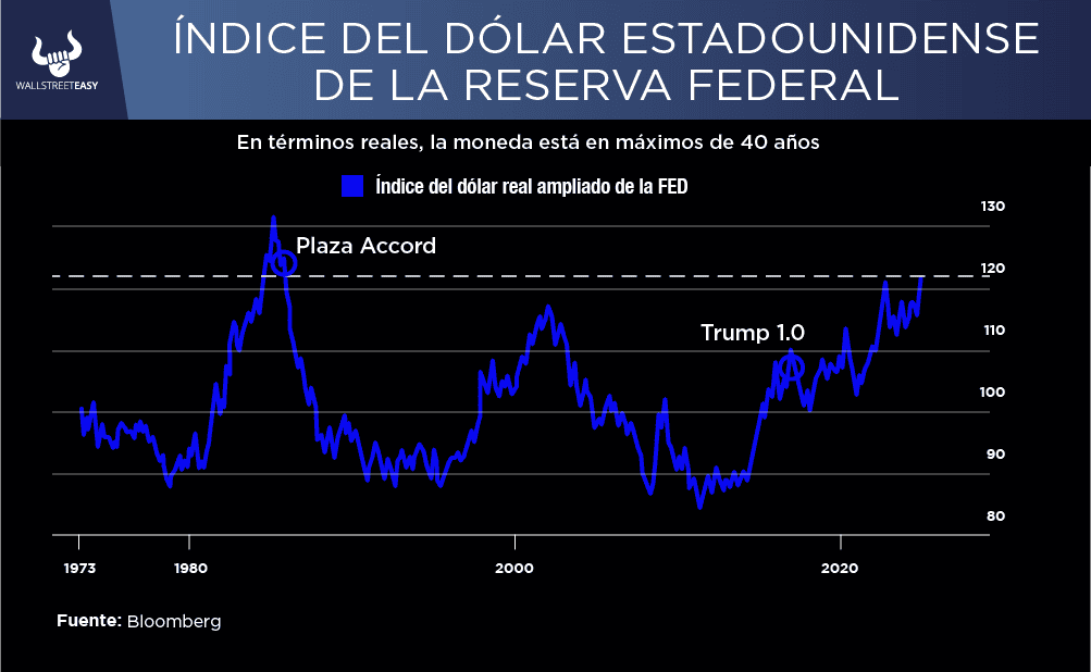 Mientras gran parte del mundo está inquieto ante la incertidumbre política y económica que se avecina, el dólar está beneficiándose tanto del fortalecimiento interno como del incremento de riesgos percibidos globalmente. A diferencia de cuando Trump asumió hace ocho años, el dólar ahora está en su nivel más alto en 40 años, según las mediciones de la Reserva Federal.