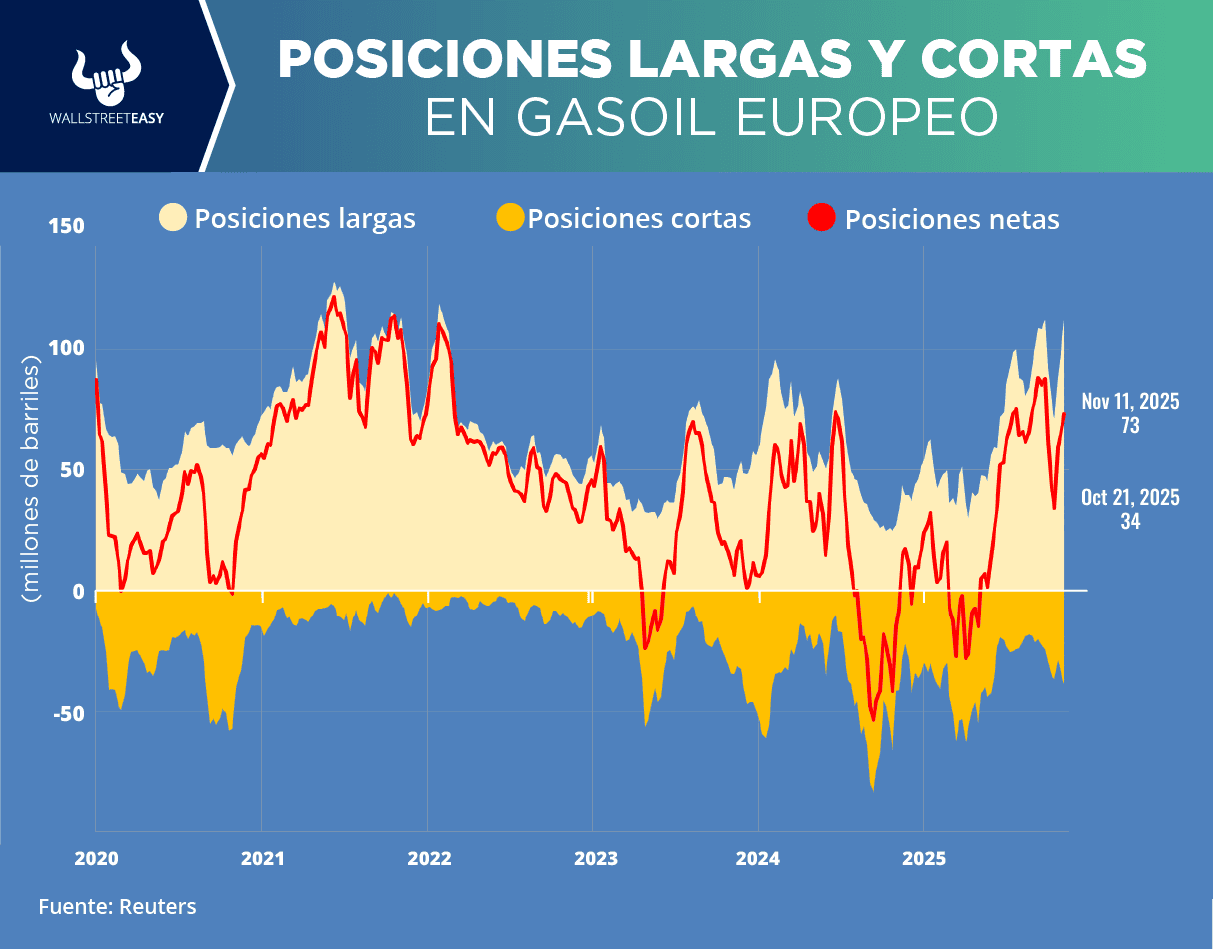 - Las existencias de destilados, como diésel y combustible para calefacción, aumentaron en 200.000 barriles hasta los 111,1M. Se esperaba un incremento de 600.000 barriles.