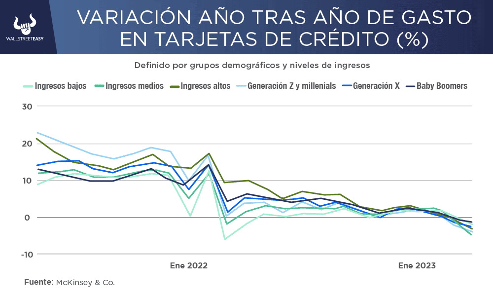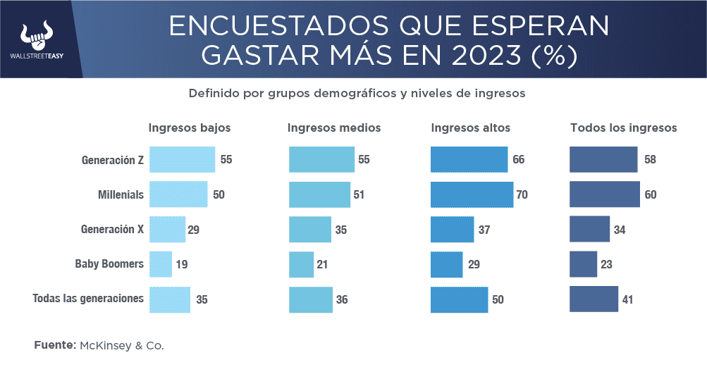 Eso ha sido contrario a lo que se esperaba que los consumidores hicieran, según una encuesta realizada durante abril de este año. En dicha encuesta, los resultados mostraron que al menos la mitad de los miembros de la Generación Z y los millennials en todos los grupos de ingresos dijeron que planeaban gastar más. Sin embargo, el gasto real disminuyó en todos los grupos ese mes, como comentamos anteriormente.