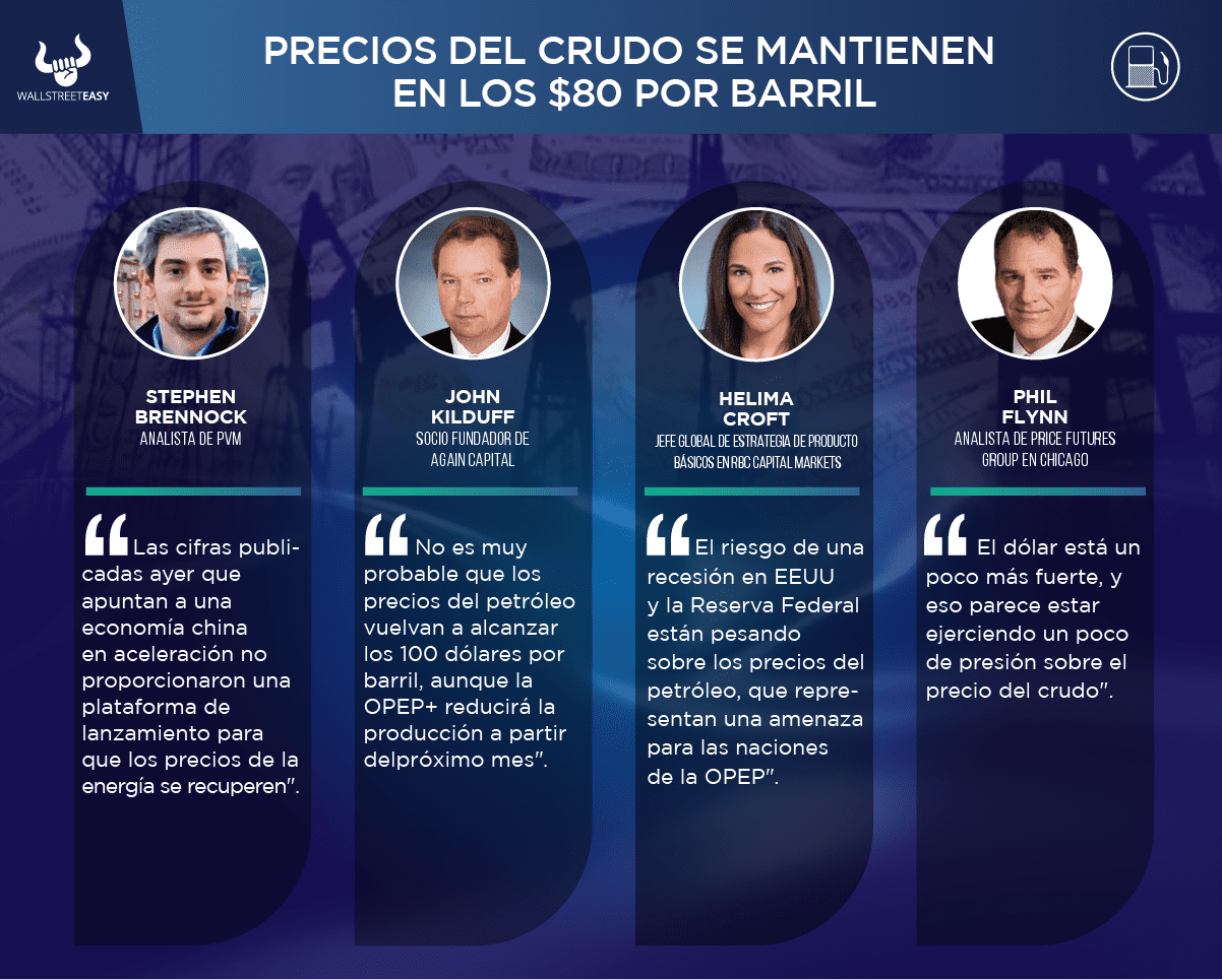 Los precios del crudo empezaron la semana a la baja, en el que las expectativas de las posibles alzas en las tasas de interés de EEUU que podrían desacelerar el crecimiento y frenar el consumo de petróleo, superaron los sólidos datos económicos de China y la caída de los inventarios de EEUU. Nuevo rango esperado es de $79 - $84.