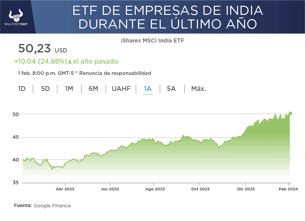 • Algunas empresas y ETF de empresas indias son iSHares MSCI India ETF ($INDA), Infosys ($INFY) e ICICI Bank ($IBN).