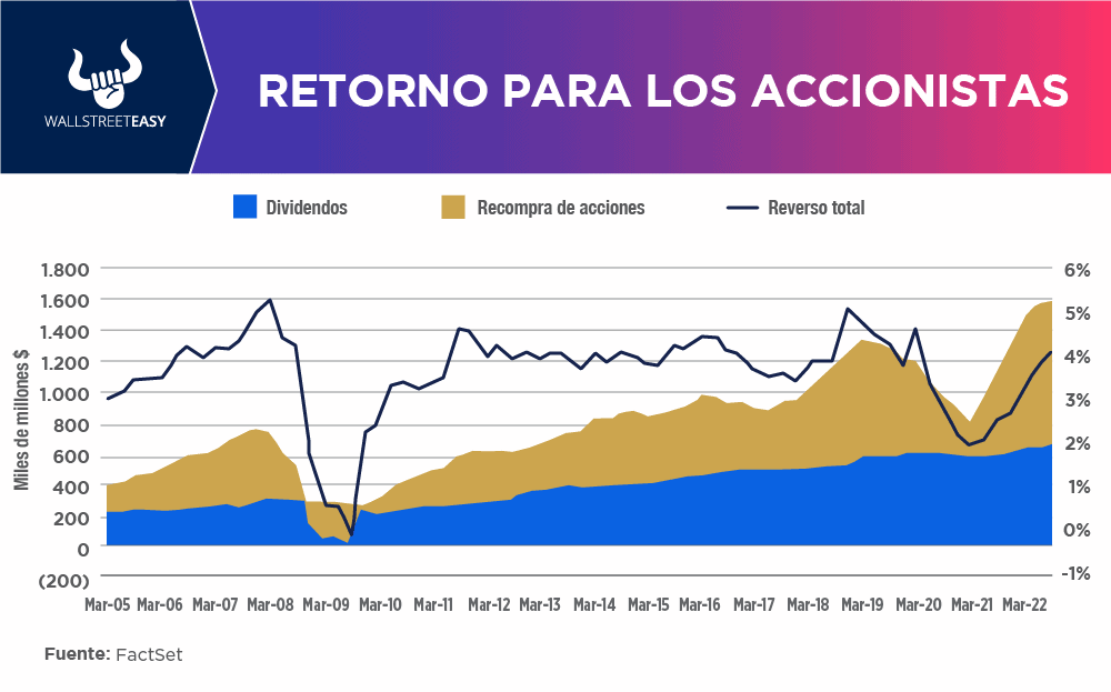 Otro punto interesante observado en el informe, es que el retorno total para los accionistas aumentó +41% interanual, los dividendos en efectivo pagados aumentaron +12,5%, mientras que las recompras netas de acciones se han acelerado en los últimos 12 meses, y actualmente se encuentran en niveles récord, con un aumento interanual del +70,6%.