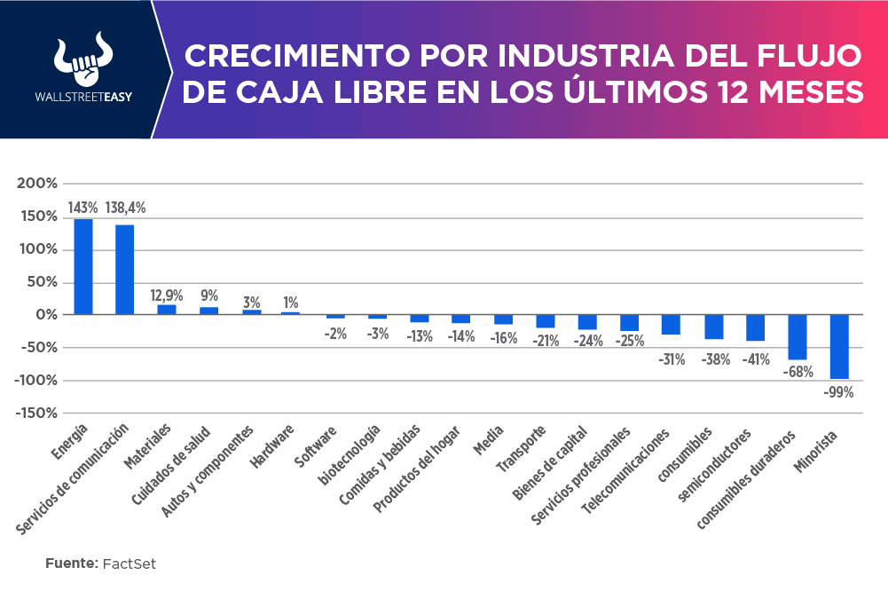 Las industrias orientadas a los bienes de consumo y el hardware tecnológico han exhibido una debilidad significativa de FCF, principalmente debido a las presiones de costos de la cadena de suministro y el almacenamiento de inventario a principios de este año.
