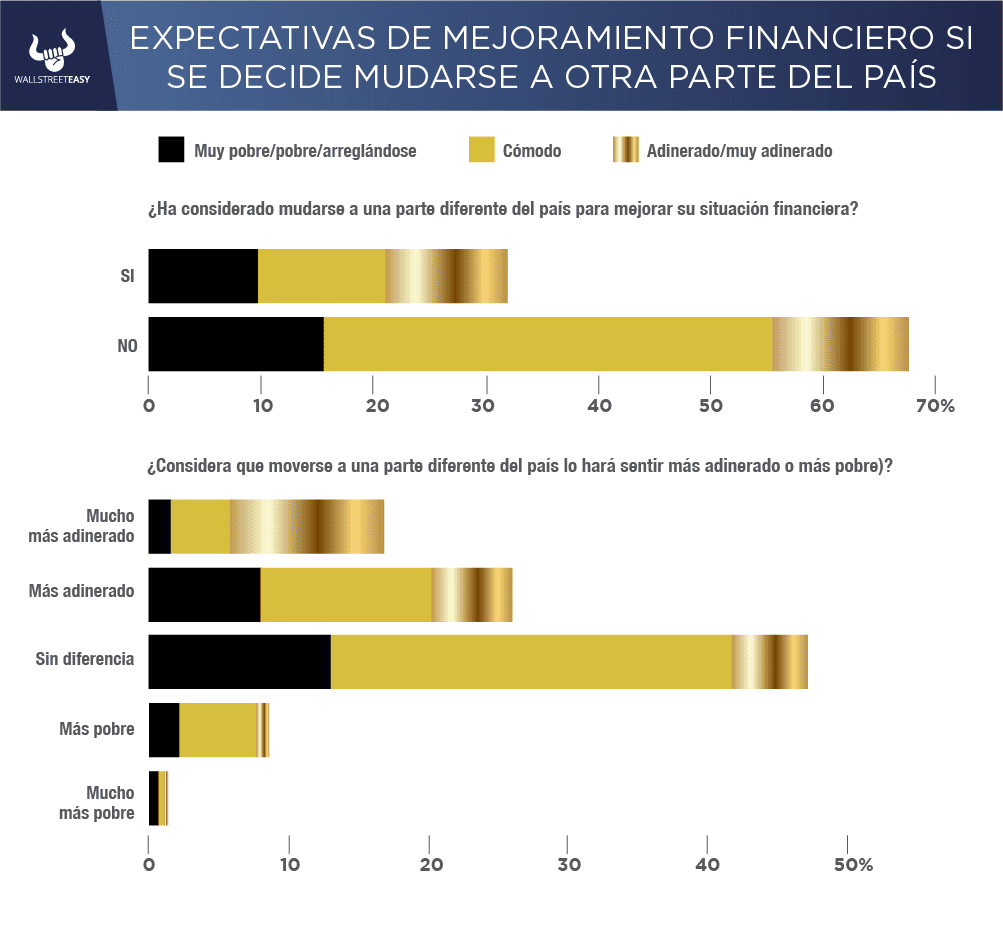 Vemos cómo cerca de una tercera parte de los encuestados han considerado mudarse para mejorar su situación financiera, y de esta porción, cerca de 50% considera que este cambio generará que sus ingresos mejoren considerablemente.