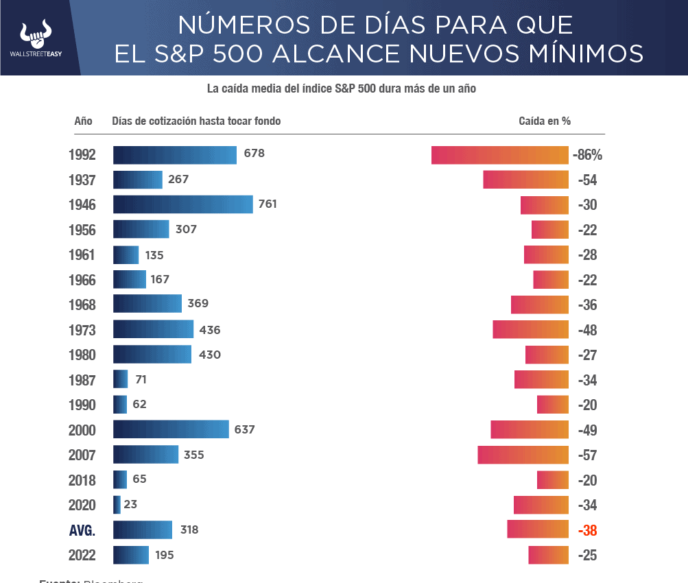 Han pasado 236 días desde el último mínimo del mercado, y sería muy inusual para las acciones volver a su punto más bajo luego del período transcurrido. Los analistas de Bloomberg informaron el año pasado que la cantidad promedio de días de negociación hasta que el S&P 500 toque fondo es de 318.