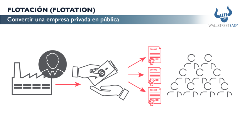 Es el proceso en que una empresa realiza al público una emisión de acciones que estarán disponibles en el mercado para que los inversionistas puedan realizar operaciones con ellas en el mercado bursátil. También se le conoce como oferta pública inicial.