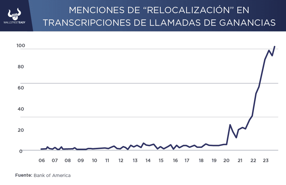 Esta temporada de resultados también nos ha mostrado que los bancos de inversión ahora pueden utilizar herramientas de “macrodatos” para extraer transcripciones de llamadas en busca de tendencias, y una de ellas es el aumento de la “relocalización”: traer empleos y capacidad de producción en el extranjero a EEUU.