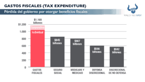 Pérdida que el gobierno tiene cuando recauda menos impuestos al ofrecer beneficios a algunas personas o sectores de la economía.