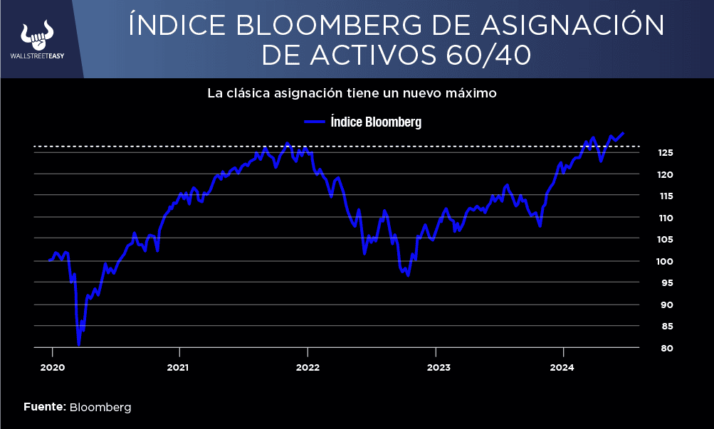 LA NOTICIA La política global es aterradora en estos momentos, con mucha incertidumbre en el aire, pero todavía no es demasiado difícil ganar dinero en los mercados. La clásica asignación de activos 60/40 (60% acciones y 40% bonos) acaba de ascender a un máximo histórico, según el Índice Global de Bloomberg.