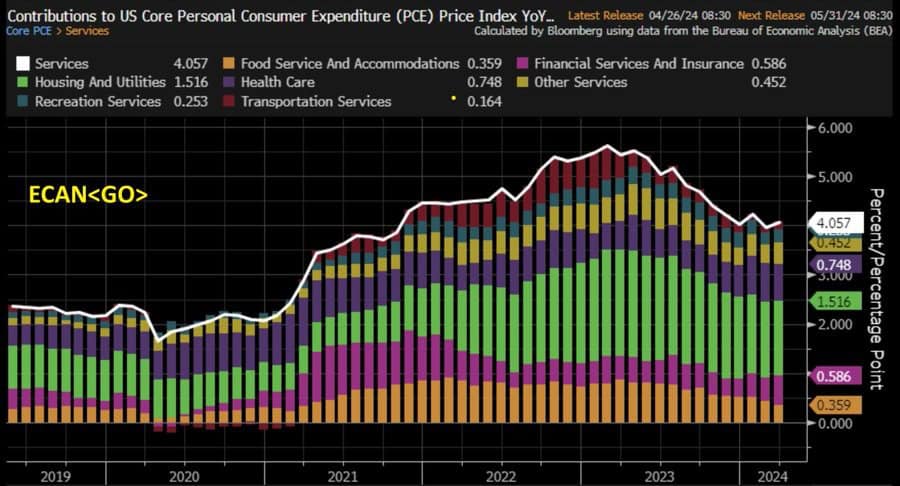 Por otra parte, 1,5% del resultado anual de 2,7% corresponde a gasto en rentas, compra de casas y servicios básicos, por lo cual continúan los mismos problemas que en el índice de precios al consumidor, es decir, las rentas siguen siendo motivo de preocupación para la Reserva Federal.