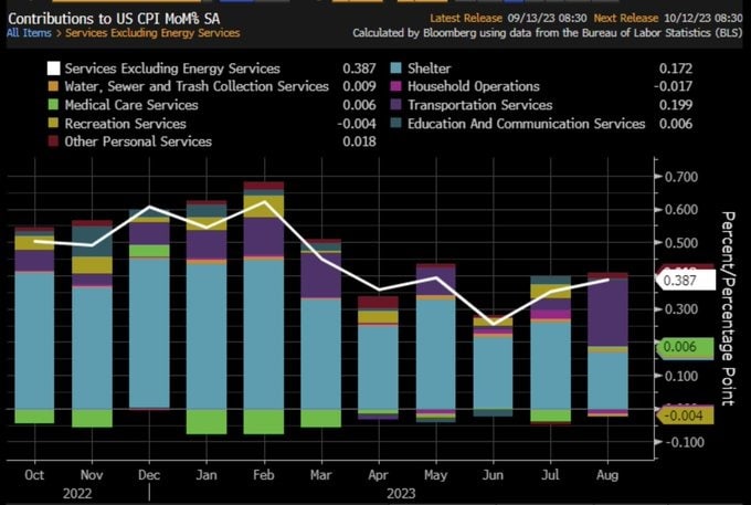 Por otra parte, la inflación núcleo reporta una subida de 0,3%, mayor al 0,2% esperado y vs 0,2% del mes pasado. El resultado anualizado de la inflación núcleo si está dentro de lo esperado, con 4,3% mensual vs 4,7% el mes pasado, así que continúa a la baja. Es imprescindible considerar que el reporte de hoy -si bien es más caliente de lo que muchos esperaban- seguramente tiene que ver con la fuerte subida del petróleo en los últimos dos meses. En esta ocasión, tiene una incidencia particular sobre los precios, especialmente en el índice general, ya que el costo de la gasolina subió 10,5% y el costo del diesel subió 10,6%, lo que supone un aumento importante en el mes. Esta subida contagia a la inflación núcleo, puesto que observamos una fuerte subida en los pasajes de avión, que alcanza 5% en el mes. Aunque este no es un reporte positivo, no cambia el escenario base de la FED de no hacer nuevas subidas de tasas este año, excepto quizá en diciembre. Además retrasa la probabilidad de bajada de tasas, de mayo a junio del próximo año. Esto quiere decir que se mantiene un escenario muy parecido al que ya venía manejando los mercados. De resto, las noticias son buenas, ya que el índice de rentas disminuyó 0,35% en el mes y contínua a la baja. El segmento de autos usados también descendió 1,2%.