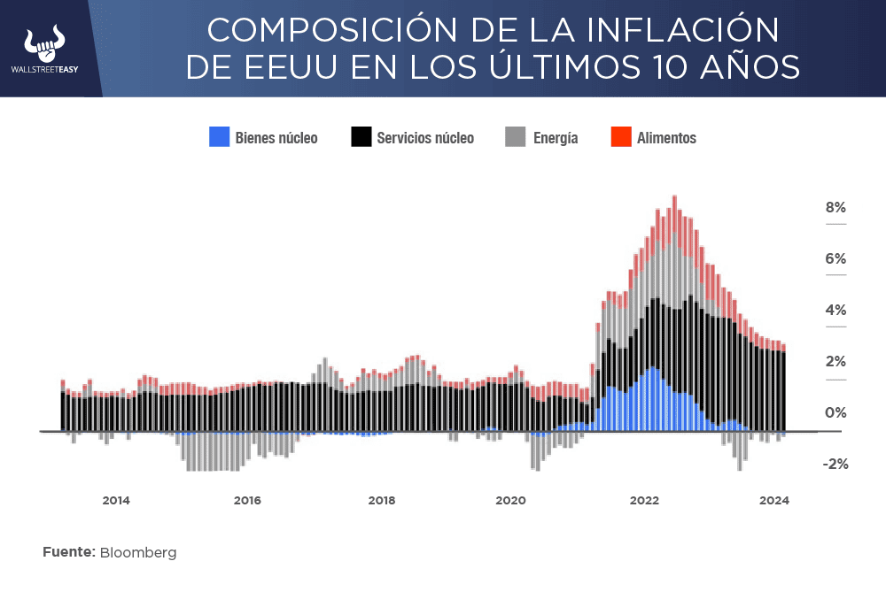 Esto se debe, en gran medida, a que la cifra de inflación no parecía tan mala una vez que la gente tuvo la oportunidad de asimilar los detalles. Si observamos la composición del Índice de Precios al Consumidor (IPC) a lo largo del tiempo, vemos como ahora la inflación es causada casi exclusivamente por los servicios.