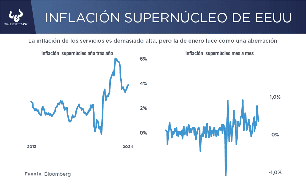 Esta fue realmente una mala noticia para cualquiera que esperara recortes de tasas. Las últimas cifras sugieren que enero fue un caso atípico. El "supernúcleo" en general se mantiene por encima del 4%, un nivel incómodo para la FED, pero no está incrementándose considerablemente de nuevo. Como eso parecía una posibilidad real después de los datos de enero, esto debería ser un gran alivio.