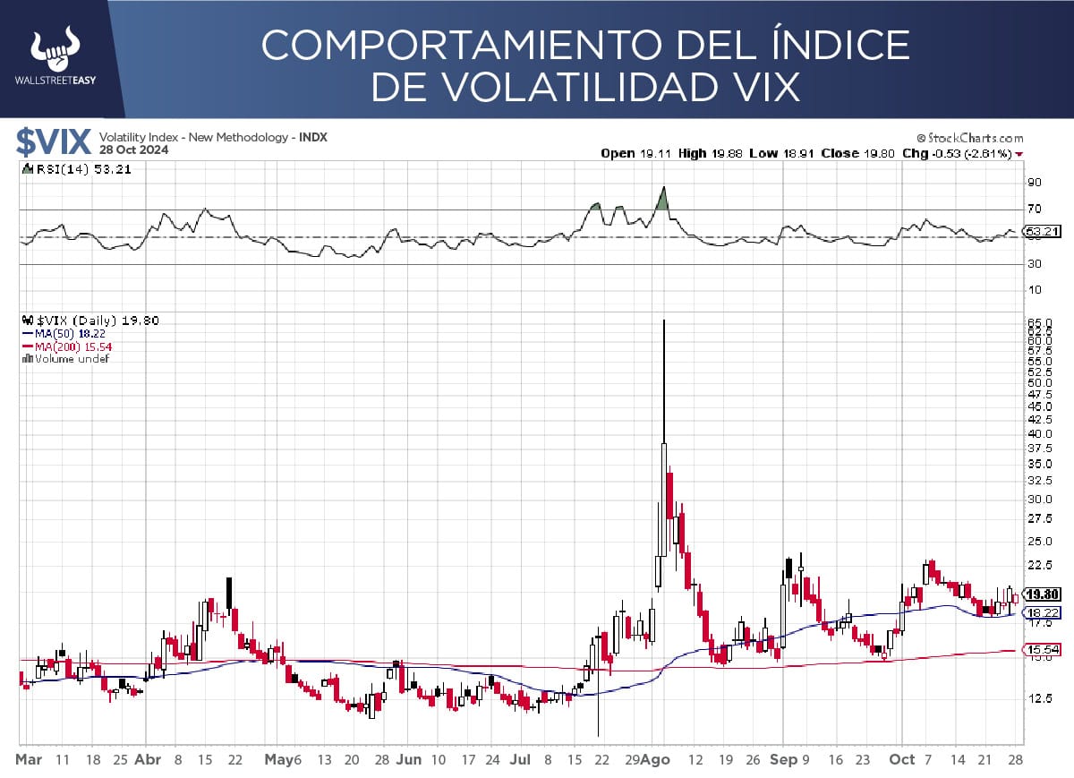 Finalmente, el VIX si bien arrancó la mañana con caídas importantes después de que el ataque de Israel a Irán fuera bastante limitado, se termina recuperando bastante y es que las elecciones en EE.UU. están muy cerca y muchos siguen pagando por proteger sus carteras.