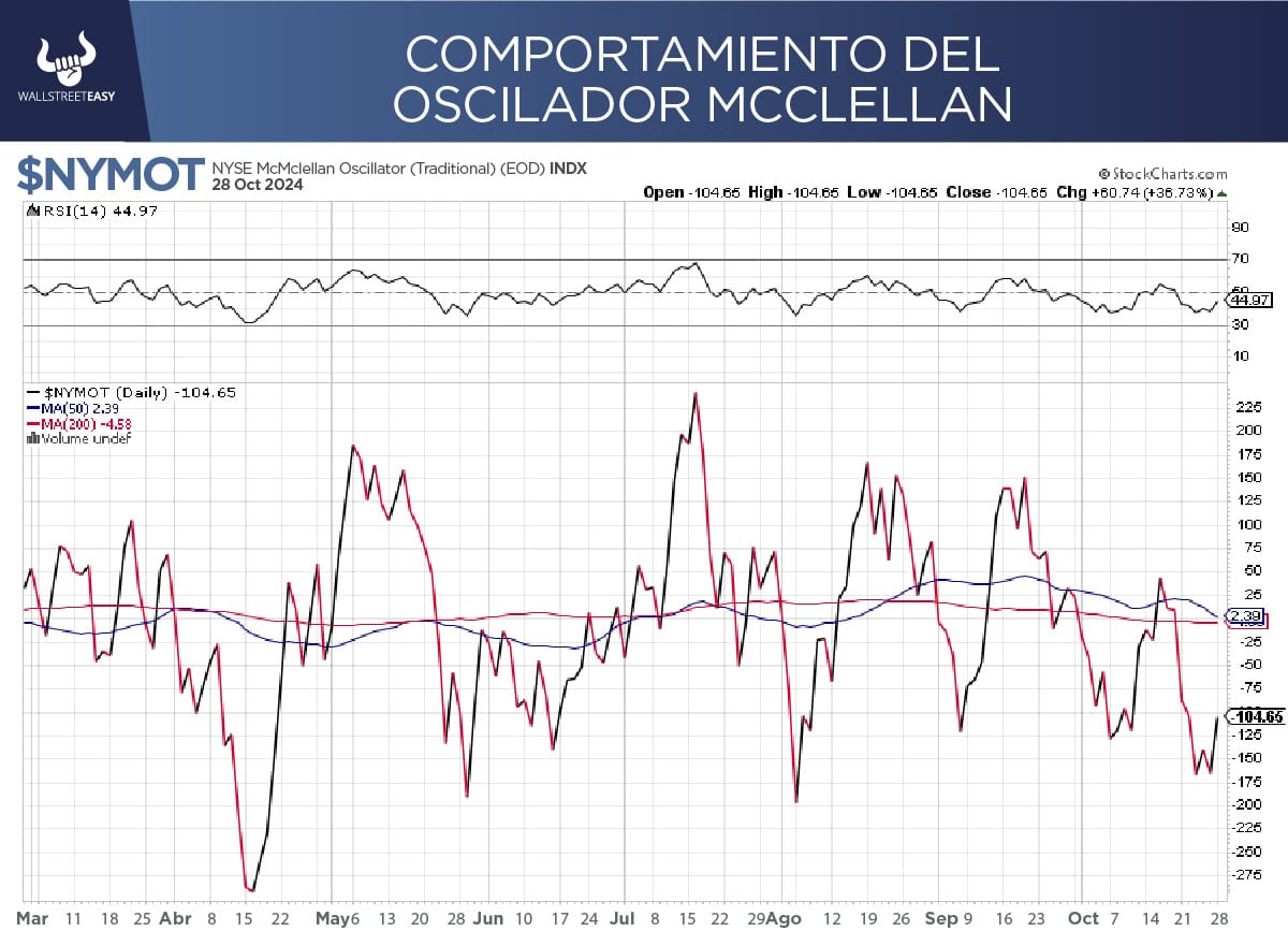 Al mismo tiempo, el medidor de inercia McClellan entró en sobreventa y empieza ahora a subir. El mercado no había estado en estos niveles de sobreventa desde mayo y agosto, meses en los que tuvo un rally muy interesante.