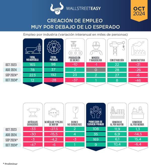 - El reporte de empleo de octubre informó la creación de 12.000 empleos, mucho menos de lo esperado.
