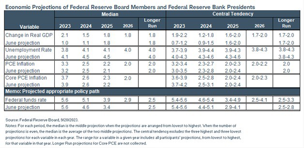 La gran diferencia es que las proyecciones que hace la FED indican que la tasa puede subir una vez más en lo que queda del año y para 2024 la mayoría de los miembros da señales de que no se bajarán las tasas, tal como esperaba el mercado y algunos miembros de la FED. Esto luego de que el banco central catalogó de "robusto" el crecimiento económico de los últimos meses y que el desempleo no está bajando tan rápido como esperaban.