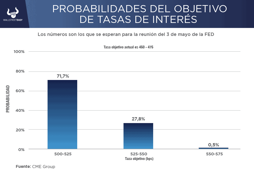 Quizás lo más importante es que los comerciantes han aumentado sus expectativas sobre qué tan alto llevará la FED la tasa de interés en este ciclo de aumento, que ahora se ubica por encima del 5%, y más arriba de las previsiones de principios de febrero de alrededor del 4,75%. Se espera que, para la reunión de mayo, se haga el último incremento hasta el rango del 5% a 5,25%, que se mantendría mínimo hasta noviembre si no hay cambios en las condiciones actuales.
