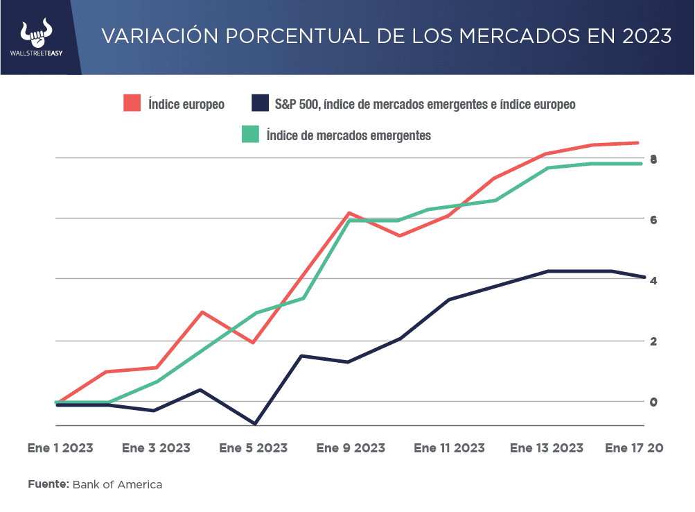 Tanto los inversores como algunos de los principales estrategas se están entusiasmando con las acciones a nivel mundial, en medio del optimismo por el enfriamiento de la inflación y la reapertura de China. Los mercados europeos, así como los emergentes han superado al S&P 500 este año, con los emergentes entrando en un mercado alcista tras un repunte de las acciones chinas.