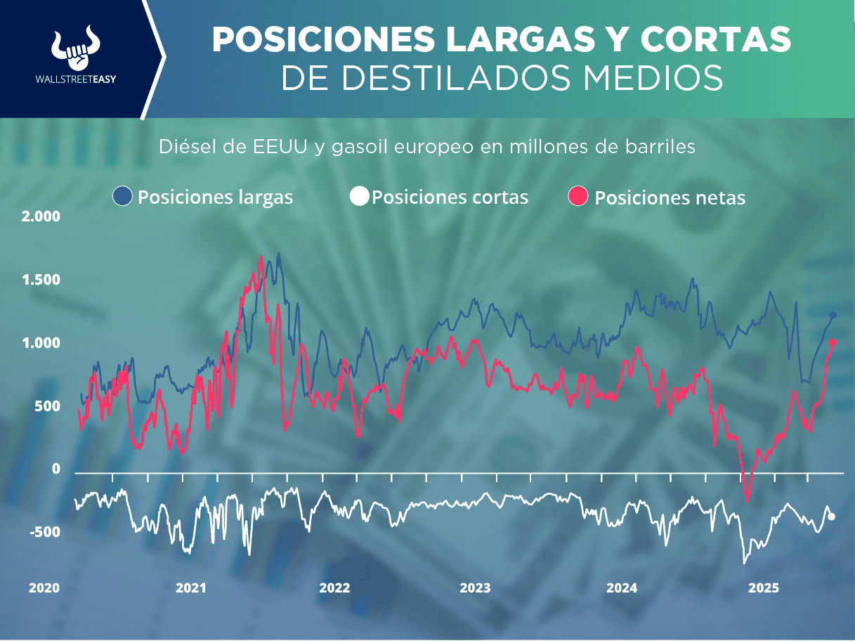- Las existencias de destilados, como diésel y combustible para calefacción, aumentaron en 4,2M de barriles hasta los 107M. Se esperaba una baja de 2,3M de barriles.
