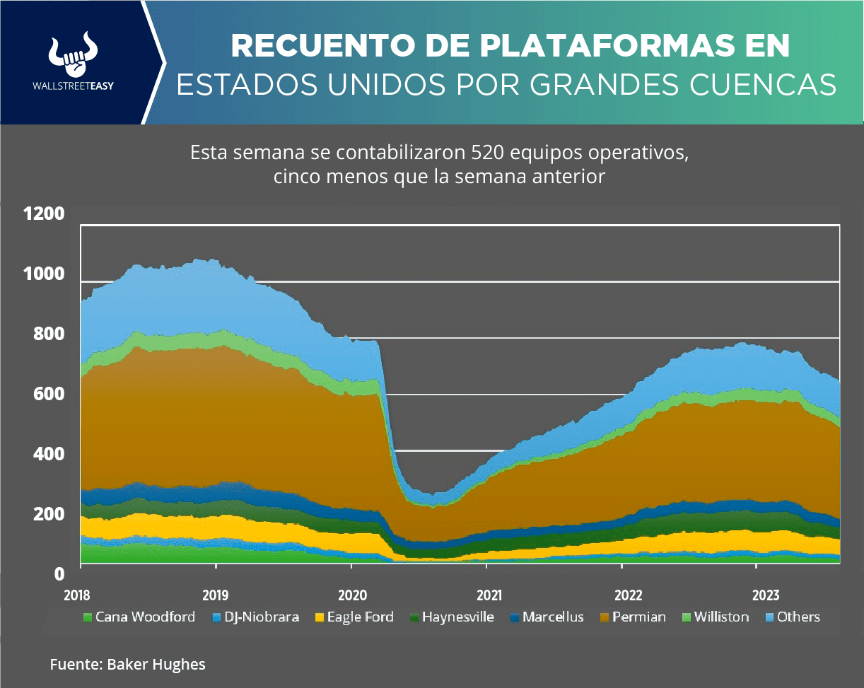 EIA, por sus siglas en inglés) reportó 782,5M de barriles en existencias de crudo, tanto comerciales como estratégicas, lo que representa una caída de 5,5M de barriles. El Instituto Americano del Petróleo (