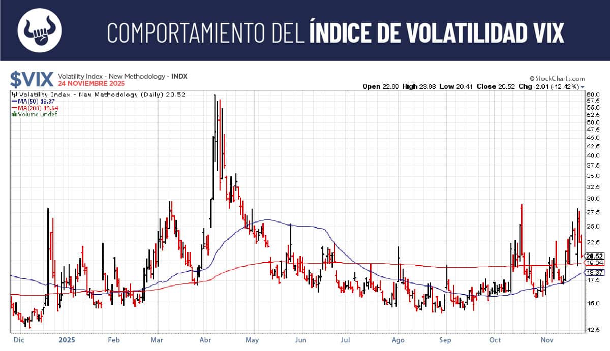 El VIX tampoco termina de dar una señal definitoria al cerrar por encima del nivel de 20, por lo cual sigue cerrando por encima de los promedios móviles, tanto de 50 como de 200 días.