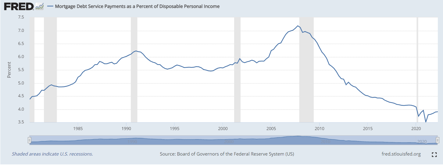 En las hipotecas vemos algo similar, adicional a que hoy en día, los pagos de hipotecas son un porcentaje pequeño de los ingresos de los americanos, a diferencia de en 2008, cuando era un porcentaje mucho más importante.